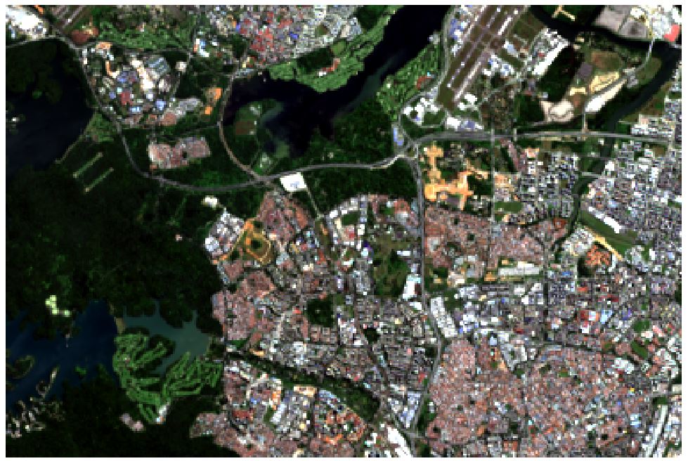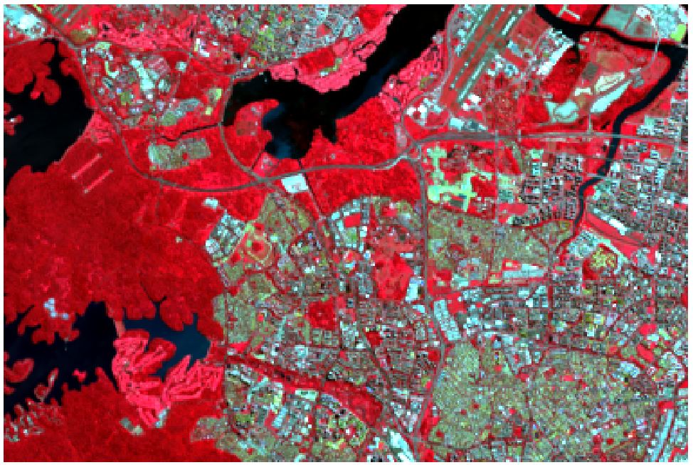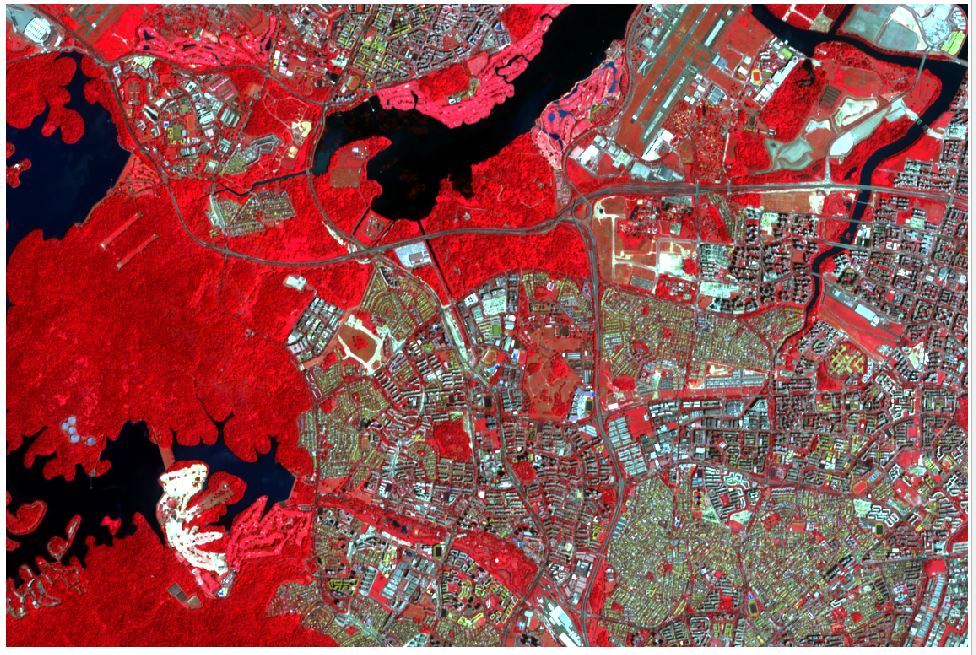 From there, we then utilized the band sets to experiment with different combination of color-composites (Figure 3.3 - 3.6) to help us have a better view and better identification of the individual land classification (e.g vegetation, land, water bodies).