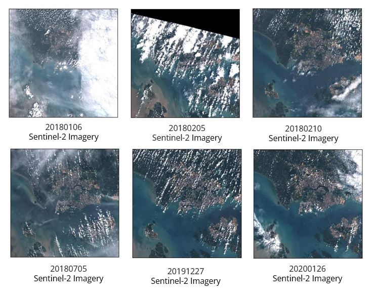 We observed that there majority of the scenes in 2018 were not useful due to the large cloud cover (Figure 2.3),which may obstruct our view during analysis. Hence we decided to look into 2019 and 2020 and selected the 20200126 scene to conduct further analysis.